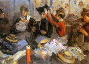 Как художник испытал влияние французских импрессионистов («Булонский лес»). Он получил известность как автор портретов, сцен городской жизни; изображал людей из народа – работниц, солдат, матросов. Искусно владел акварелью.