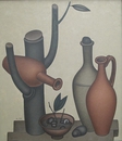 Основной жанр Краснопевцева – близкий к сюрреализму «метафизический натюрморт» с простой, часто побитой керамикой, сухими растениями и раковинами. Эти меланхолические работы, написанные в глухих, пепельных тонах, развивают барочный мотив бренности и ирреальности мира.