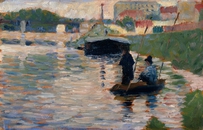 После того, как его живопись была отклонена Парижским Салоном, Сёра предпочел индивидуальное творчество и союзы с независимыми художниками Парижа. В 1884 году он и другие художники (включая Максимильена Люса) сформировали «Сосьете де Артиста Индепендэнтса» («Общество независимых художников»). Там он и познакомился с П. Синьяком, который впоследствии также будет использовать метод пуантилизма. В этом же года Сёра начал работу над своей самой знаменитой работой – «Островом Гранд Жатт», и участвовал в Первой выставке Независимых.