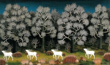 Сквозной мотив его живописи и графики – гигантские цветы, подробность окружавшей его природы и, вместе с тем, образ рая. Лучшей картиной Генералича считается «Олени идут на свадьбу» (1959).